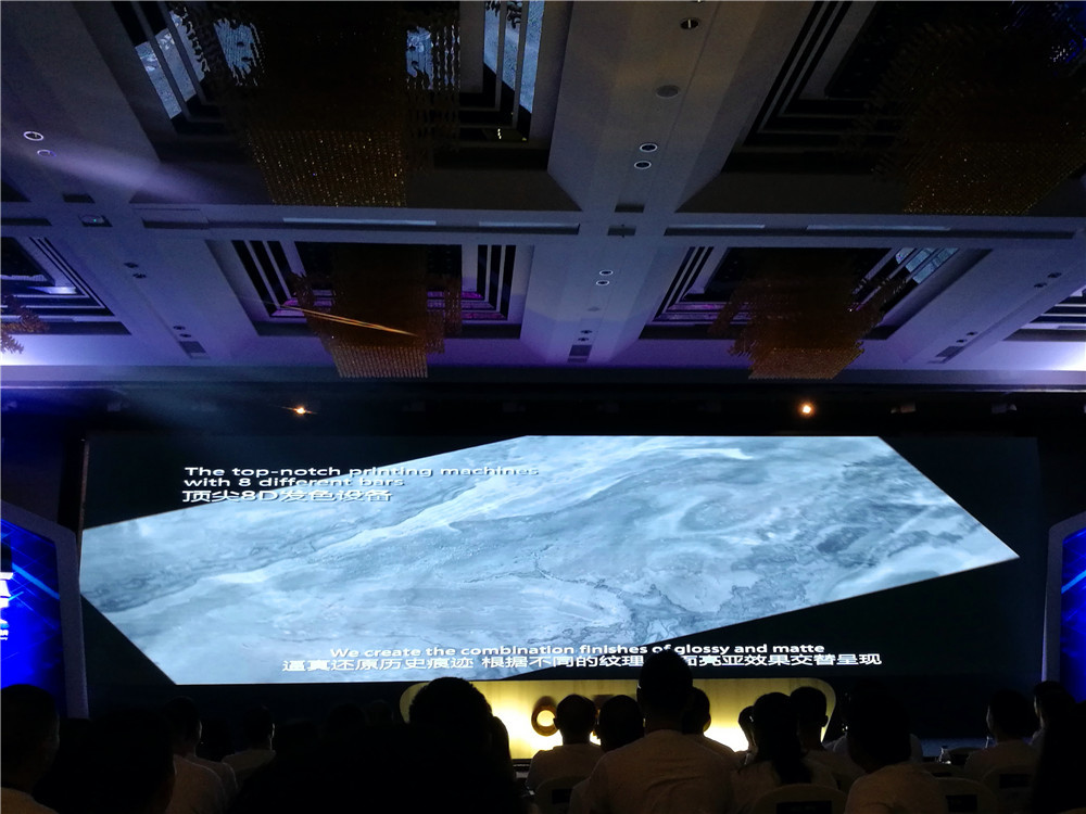 【11:12】欧神诺卡萨罗系列——卡可新品揭开神秘面纱。 据介绍,欧神诺卡可有凸面、凹面、十字纹共四个面的效果,模拟自然界石材的各种效果,与意大利合作设计,在表面的硬度、耐磨度上都得到和很大的飞越。有部分产品是设计师用一年时间画出来,从细节处看到其纹理十分立体;其柔光系列,有遇水更防滑特性。另外,针对大板市场,欧神诺也自建了大板团队,在终端推广上建立了完整的体系。