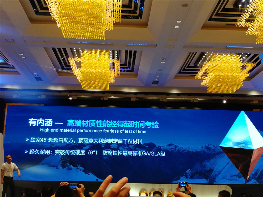 【11:40】佛山欧神诺陶瓷股份有限公司总裁 陈家旺先生上台,作《传承经典 创领世界——卡可新品发布》的主题演讲。他表示欧神诺这么多年来做产品是有情怀的,从去年发布卡萨罗系列产品,带来高雅大气特别的国际风,意味着欧神诺品牌化运作的新模式渐见成功,品牌高端定位不断深化。