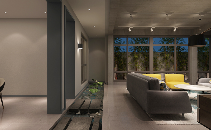 除了对竹的意象引用外,讲究风水文化的国人,也对活水通气的理念较为重视。因此,一条连通户外到室内的“小溪”让整个家都清凉、生动了起来!