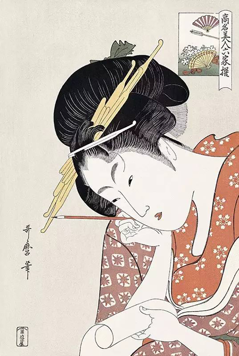 其实,浮世绘的题材极其广泛,有社会时事、民间传说、历史掌故、戏曲场景和古典名著图绘,有些画家还专事描绘妇女生活,记录战争事件或抒写山川景物……它几乎是江户时代人民生活的百科全书,又因为是在十八世纪末期经济富庶的江户城,人人都奉行“人生如梦,即时享乐”的哲学,所以画面洋溢着欢愉和美貌。