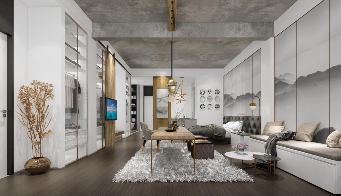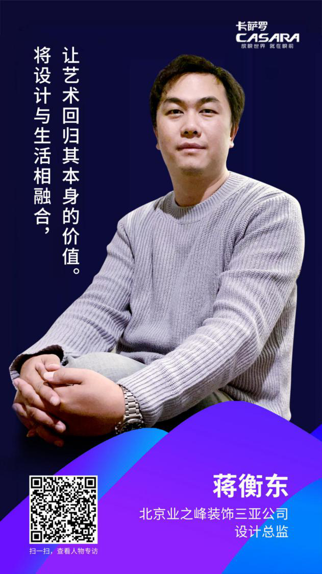 在其代表作海南三亚度假别墅的案例中,业主夫妇都从事服装设计行业,基于业主与蒋衡东共同的美术审美观点与个性要求,一个强调自然、空白,脱俗、雅致、安静的空间就这样自然而然的形成了。