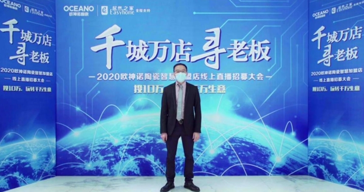 直播一开始,欧神诺陶瓷总裁陈家旺就现身直播间,向直播间的所有来宾表达谢意。陈总表示,随着新冠肺炎在全球蔓延,中国乃至世界的经济将会快速进入萧条期。陶瓷行业两极分化,优胜劣汰的竞争格局将会快速洗牌。要认清当前形势及未来的发展趋势,在行业的大变局中与欧神诺携手共创新的机会,共享新红利。