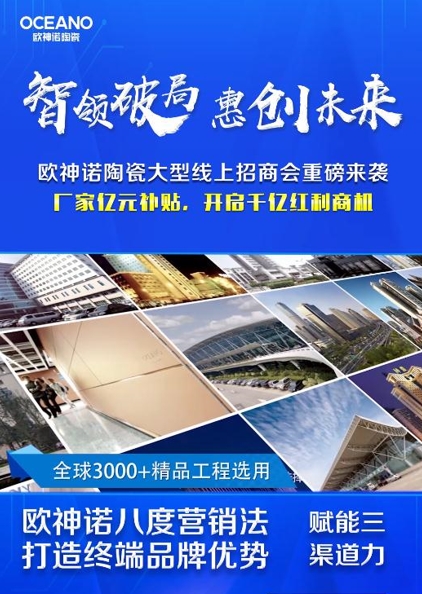 4月28日14:00,“智领破局•惠创未来”欧神诺陶瓷线上直播招商会即将来袭!零售、整装、设计师、工程等成熟的渠道开拓支持,专业销售服务团队助力成功!加盟欧神诺,开启你的全渠道时代!