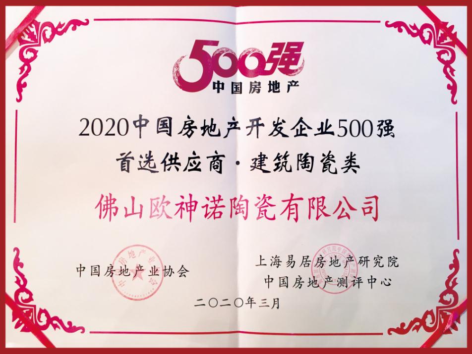 此外,欧神诺依托深耕工装渠道,为各大房地产企业提供的良好服务,成绩得到认可。至今为止已经获得数十项工程类荣誉,成为陶瓷行业的佼佼者!