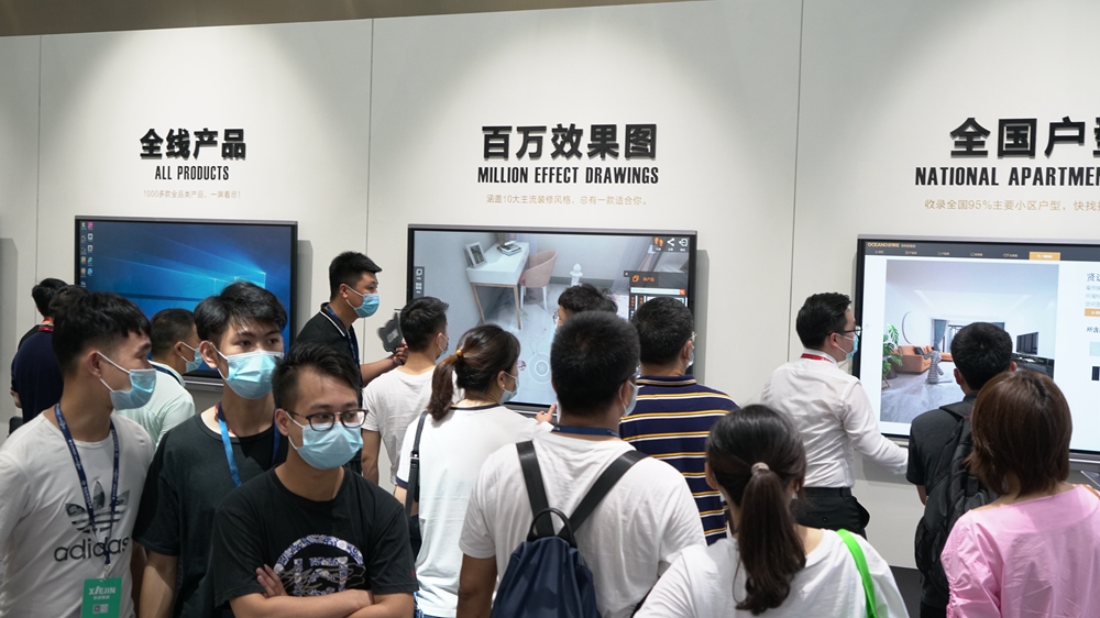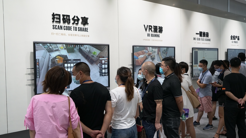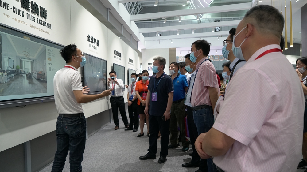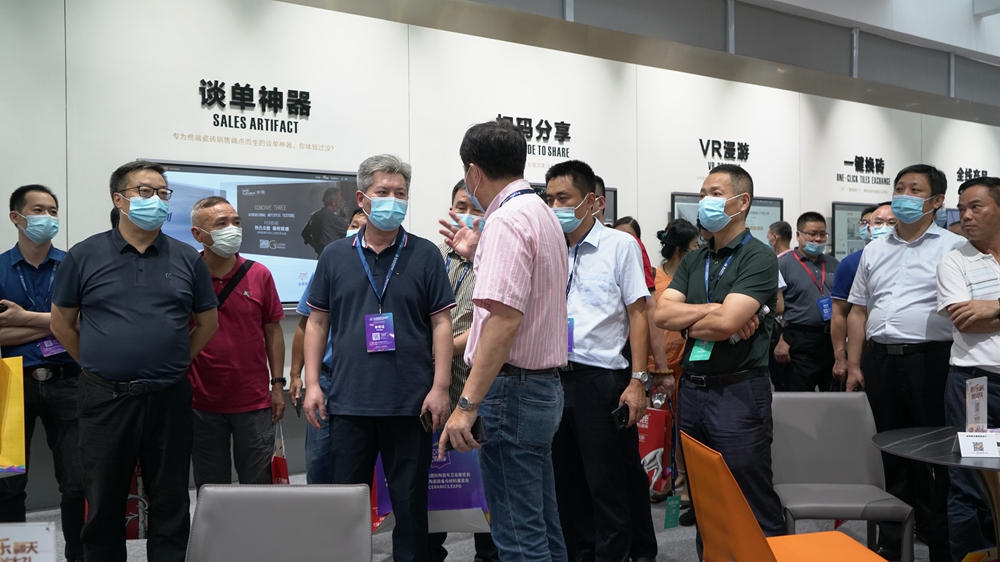 与展会上清一色的瓷砖展位不同,欧神诺的展位上亮相了数款智慧营销工具,全国户型随时看,百万空间效果图尽情看,全线产品随便选,一键换砖随心玩,VR漫游好逼真,扫码分享好社交,更有不用出门就可以引客到店的聚客宝,吸引着访者驻足停留,纷纷赞叹这些工具颠覆了传统的买砖方式,极大方便了消费者选砖。
