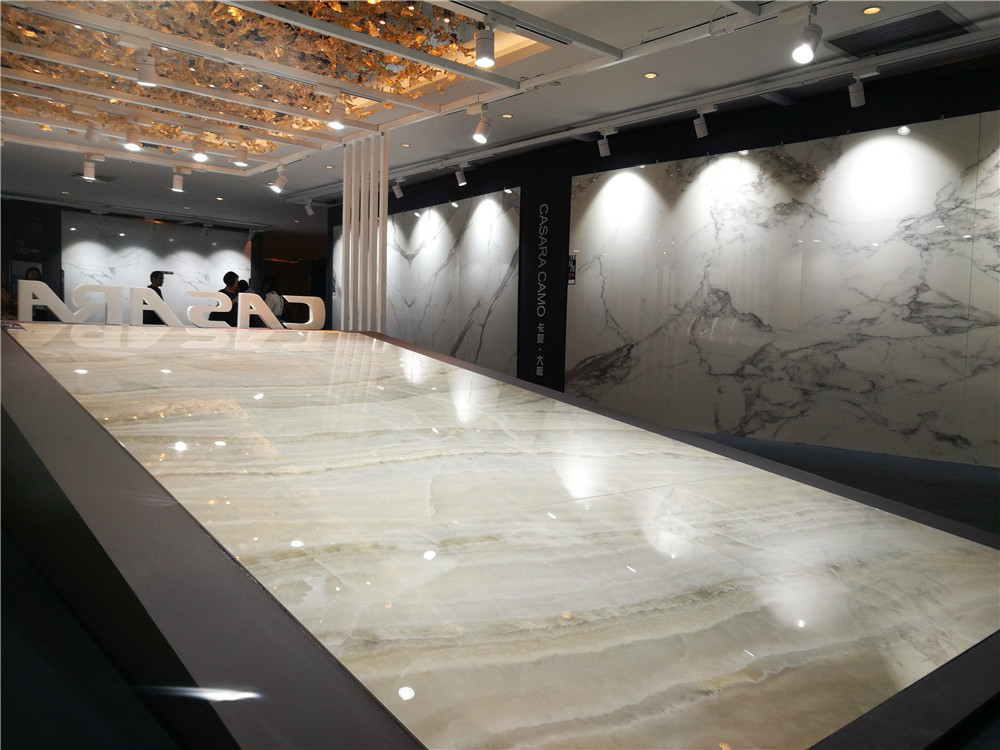 【11:12】欧神诺卡萨罗系列——卡可新品揭开神秘面纱。 据介绍,欧神诺卡可有凸面、凹面、十字纹共四个面的效果,模拟自然界石材的各种效果,与意大利合作设计,在表面的硬度、耐磨度上都得到和很大的飞越。有部分产品是设计师用一年时间画出来,从细节处看到其纹理十分立体;其柔光系列,有遇水更防滑特性。另外,针对大板市场,欧神诺也自建了大板团队,在终端推广上建立了完整的体系。