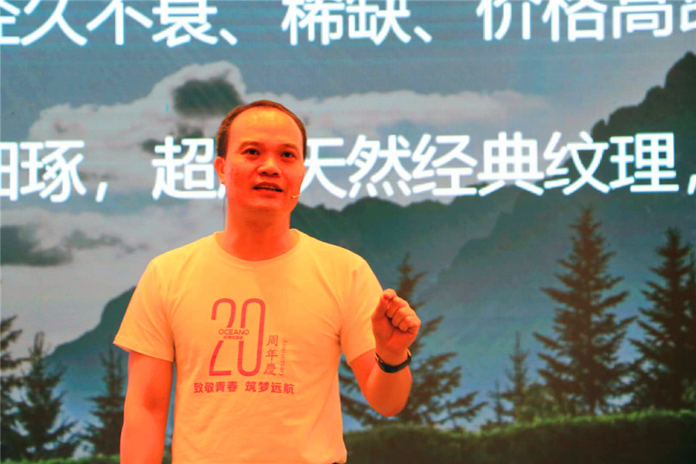 【11:40】佛山欧神诺陶瓷股份有限公司总裁 陈家旺先生上台,作《传承经典 创领世界——卡可新品发布》的主题演讲。他表示欧神诺这么多年来做产品是有情怀的,从去年发布卡萨罗系列产品,带来高雅大气特别的国际风,意味着欧神诺品牌化运作的新模式渐见成功,品牌高端定位不断深化。