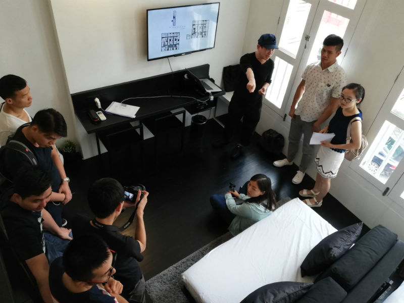 (Spacedge designs的创始人William chan在优秀酒店项目Hotel Mono中进行设计讲解)