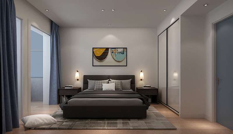 在卧室的搭配上,除了采用冷静的配色,也通过艺术挂画,让气氛增添活跃的点缀。