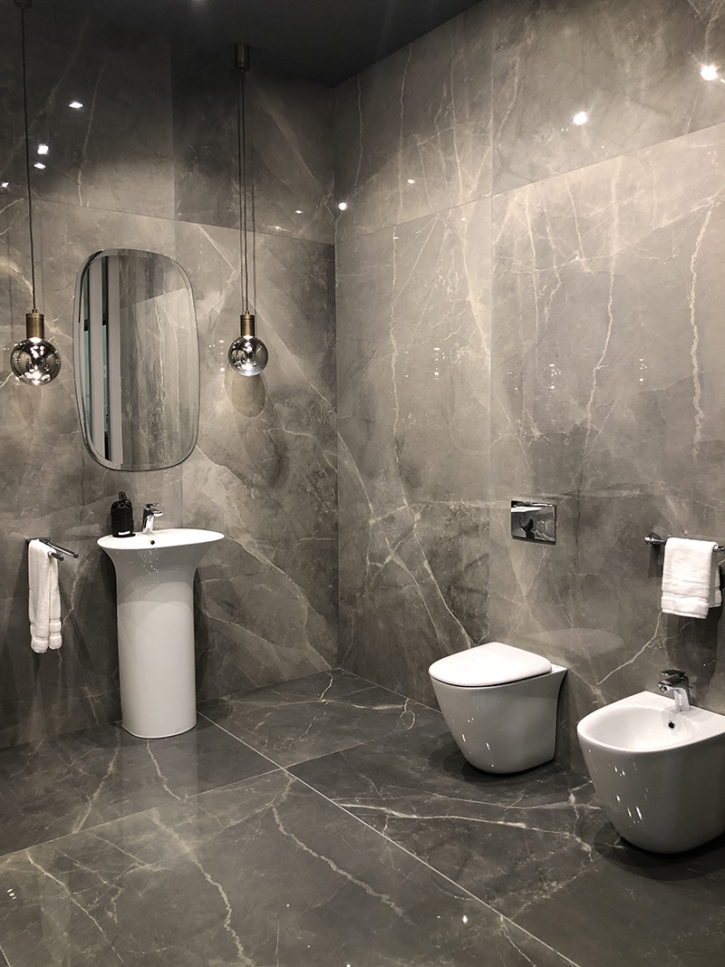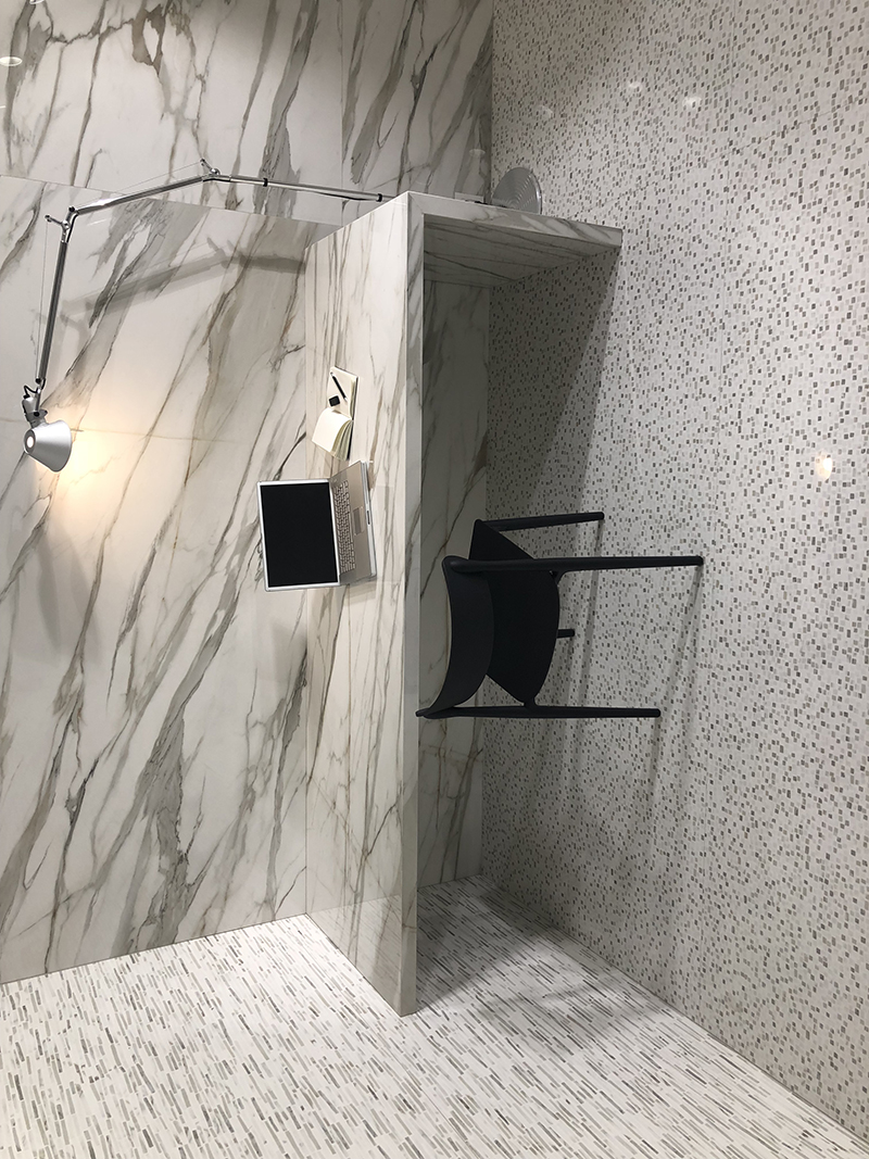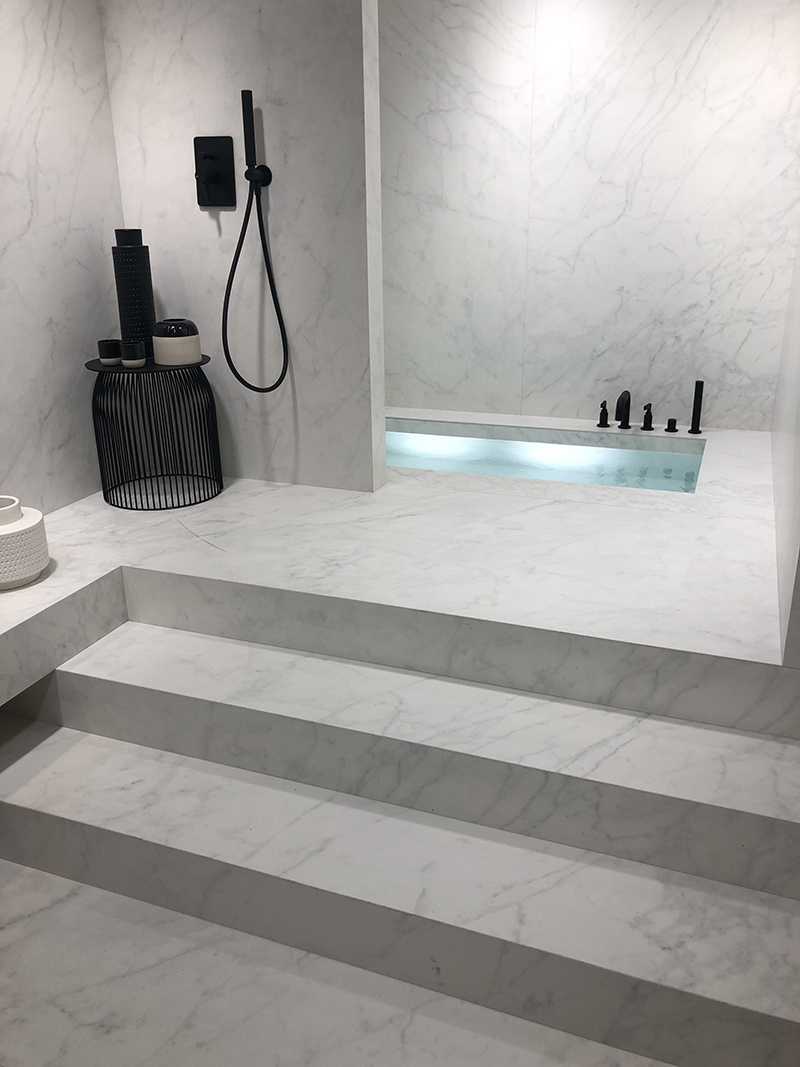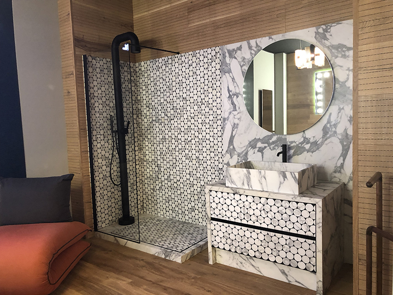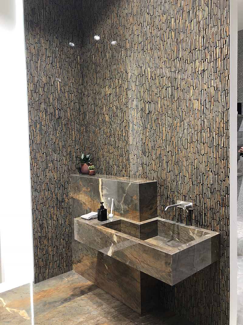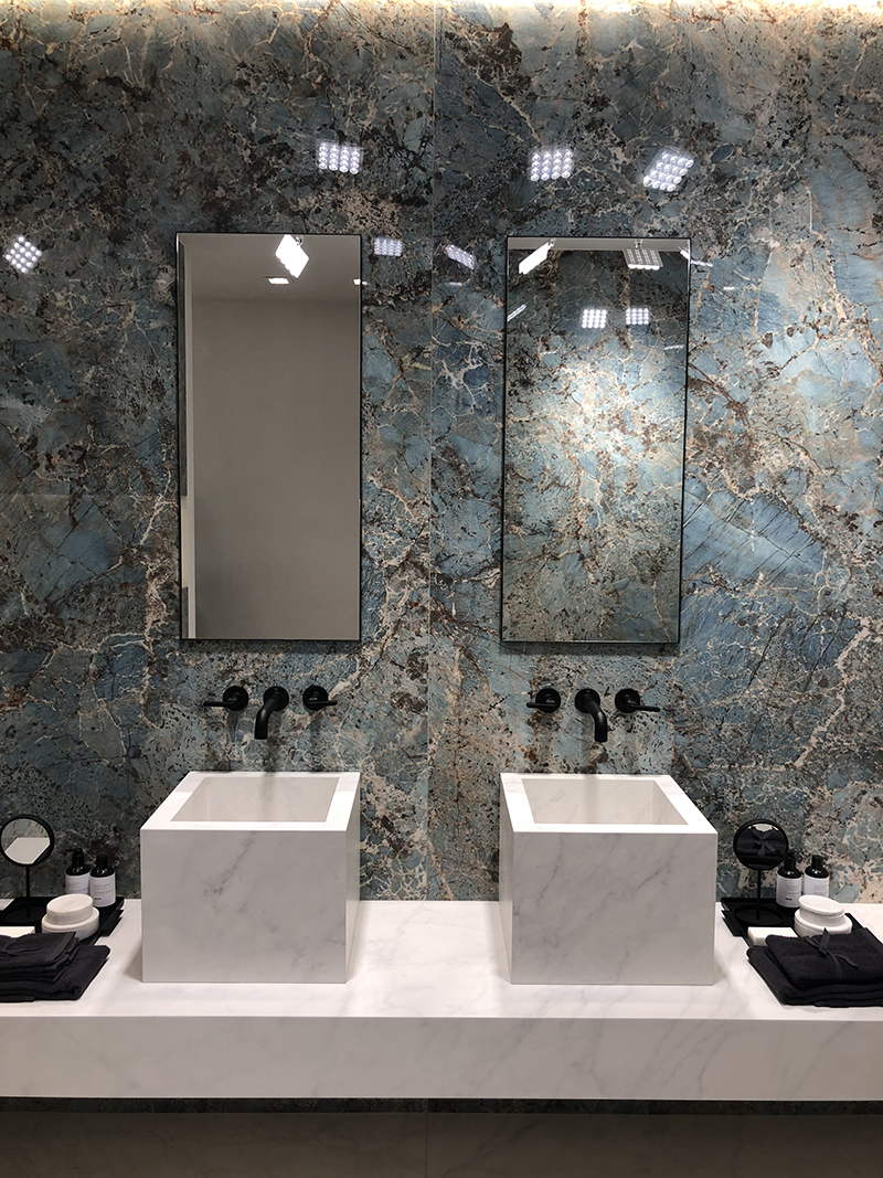 卫浴间无疑是展示率最高的空间,精致的卫浴产品+瓷砖组合,轻松营造高品位。今年的卫浴空间,大理石瓷砖依然是主角。厂商们通过工艺创新来呈现更富有表现力的石头纹理,达到令人惊叹的自然外观,令人一眼倾心,用以打造放松自在、畅享生活的空间氛围。