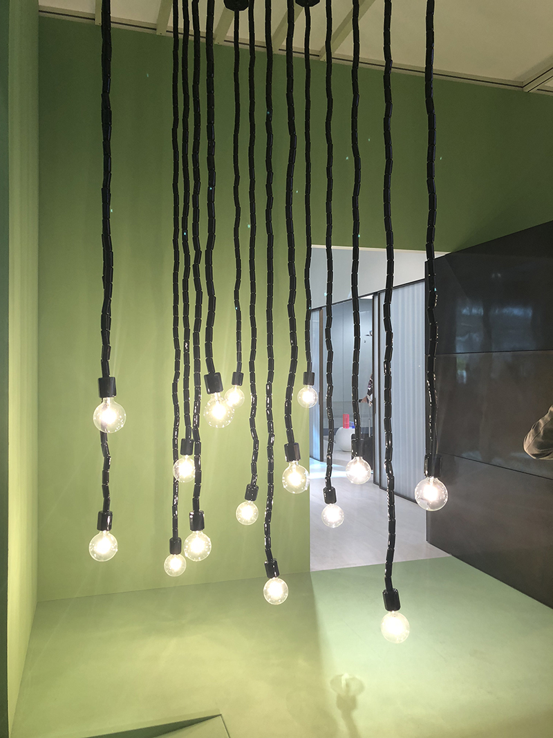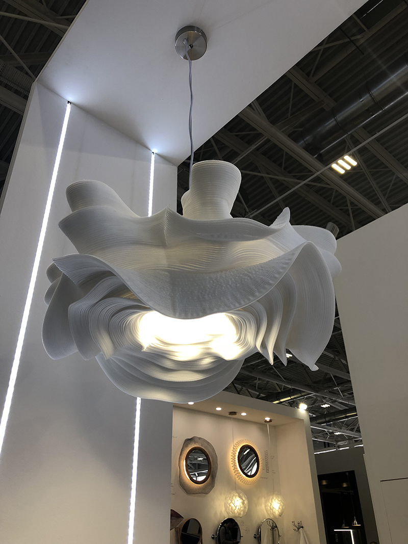 在灯光上也不例外,垂挂式灯泡以现代化的样式融入生活空间,使用了全新的LED灯泡,并推出了多种奇形怪状的款式。每个展位都像是灯光秀场,让我们见识到许多从未见过的灯具。灯光给予了展位整体的视觉舒适感及产品空间的表现力。