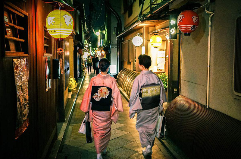 这是一片集现代化与古风于一身的地区,繁华的商业区小街上,还有着许多古唐风的小店。这些古风的小巷酒吧茶馆鳞次栉比,店家或红灯高挂,或幡旗招展,食客或情侣身影隐现其间,一派歌舞升平景像。时而偶遇穿着日本传统和服浴衣的美人在仅能容纳并肩3人宽的石板小路上悠闲漫步,就好像穿越时空,回到了昭和时代。