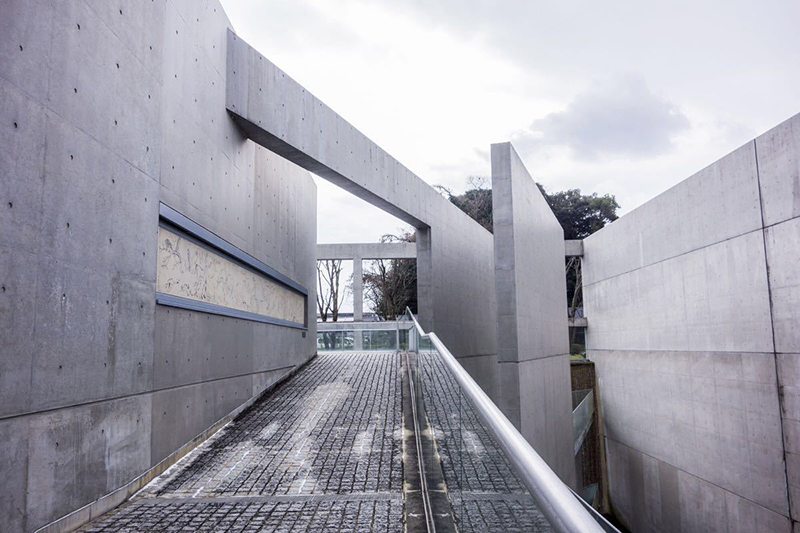 安藤大师以清水模展现利落线条,将美术馆的方正圆弧面处理地细腻流畅,多种大面积的切割让行走的开放空间却似各自独立,使用坡道与阶梯的交错让整体结构拥有多种层次,庭院内以水的流动与作品和空间对话,一路淅沥沥的流水声伴随着参观步伐,大型的瀑布面与静态倒映天空与窗框的水区都各有风采,将天空、环境、水与光影一同入戏。
