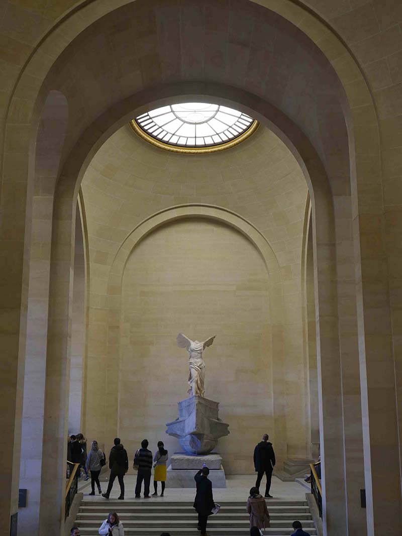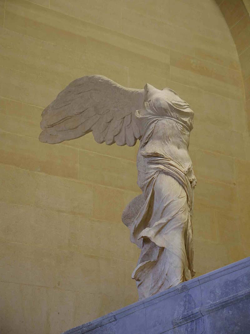 在苏利馆的古希腊艺术展厅中,雕塑《萨摩色雷斯的胜利女神》伫立在此,虽然雕像的头部与手臂已经遗失,但仍被认为是古希腊雕塑家们高度艺术水平的杰作。