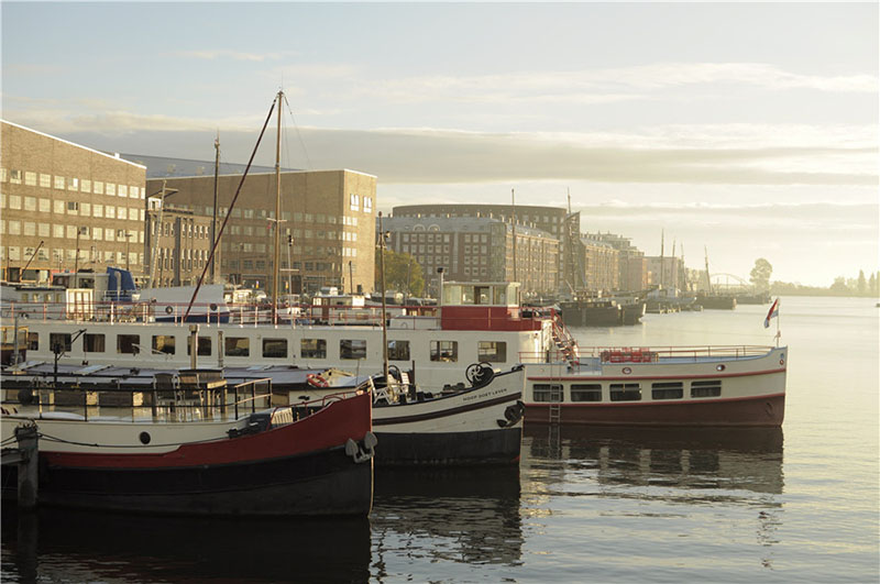 复杂的运河网络在阿姆斯特丹市中心也成为了一个独特的住宅区,沿着全城市的运河河畔停泊了五颜六色的船屋,船屋是一个非常有吸引力的住宿选择,为到这个城市的各国小伙伴儿提供一个水上生活的体验。