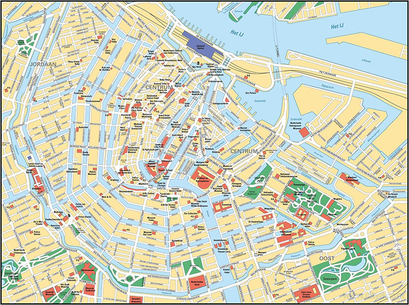 阿姆斯特丹是一座水城,有大小165条人工开凿或修整的运河道,河网交错,河道纵横,十分壮观。运河由里向外扩散,依次是辛格尔河、绅士运河、皇帝运河、王子运河以及辛格尔运河。“辛格尔”的意思是“包围”,最里面的辛格尔是16世纪的护城河,外侧的辛格尔运河是17世纪的护城河,为了相互区别,外侧的叫辛格尔运河,内侧的叫辛格尔河。运河越修越多,阿姆斯特尔河成为河汊纵横的阿姆斯特丹唯一的自然河,它既是整座城市重要的风景线,也是阿姆斯特丹的命脉所在,有着极高的文化和历史价值。