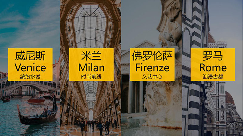 本次旅程我们还将尽情游历意大利历史最悠久、最著名的四座艺术城市,从古到今,从意大利名胜建筑到生活风情,沉浸式体验艺术写意的意大利度假时光。