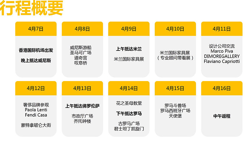 2、旅团报名资费23000元(常规意大利旅游费用,以旅游社报价为准)。游学旅程中专业导赏、设计公司交流、奢侈品牌参观等费用由主办方承担及专人跟进安排。