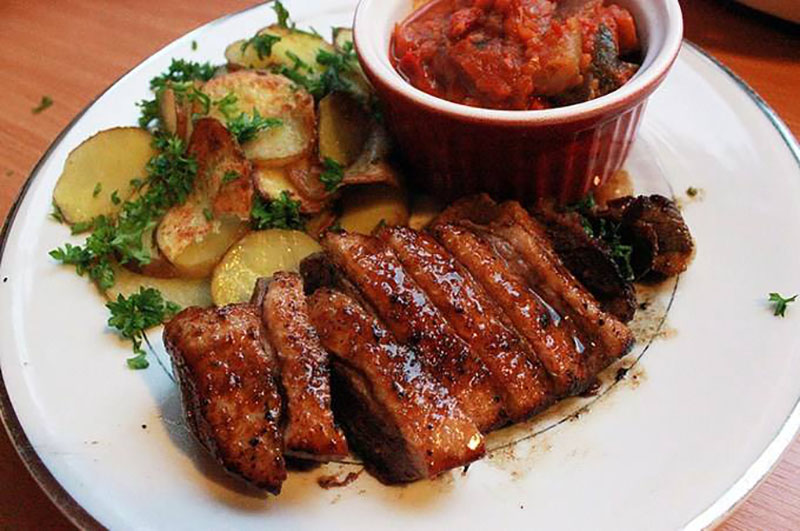 法国人嗜鸭肉,尤其是鸭胸肉。在法国,并不是所有鸭子的胸脯都叫Magret的,只有少部分品种的鸭子才能做鸭胸肉。有两种经典吃法,一是风干,二是热吃。前者脂膏丰腴,一般切成薄片作为前菜;后者按照烹饪火候可以选择让厨师做成三分熟或者五分熟,淋上意大利香脂醋。进餐时可以搭配波尔多干酒和酸奶蛋糕甜点。