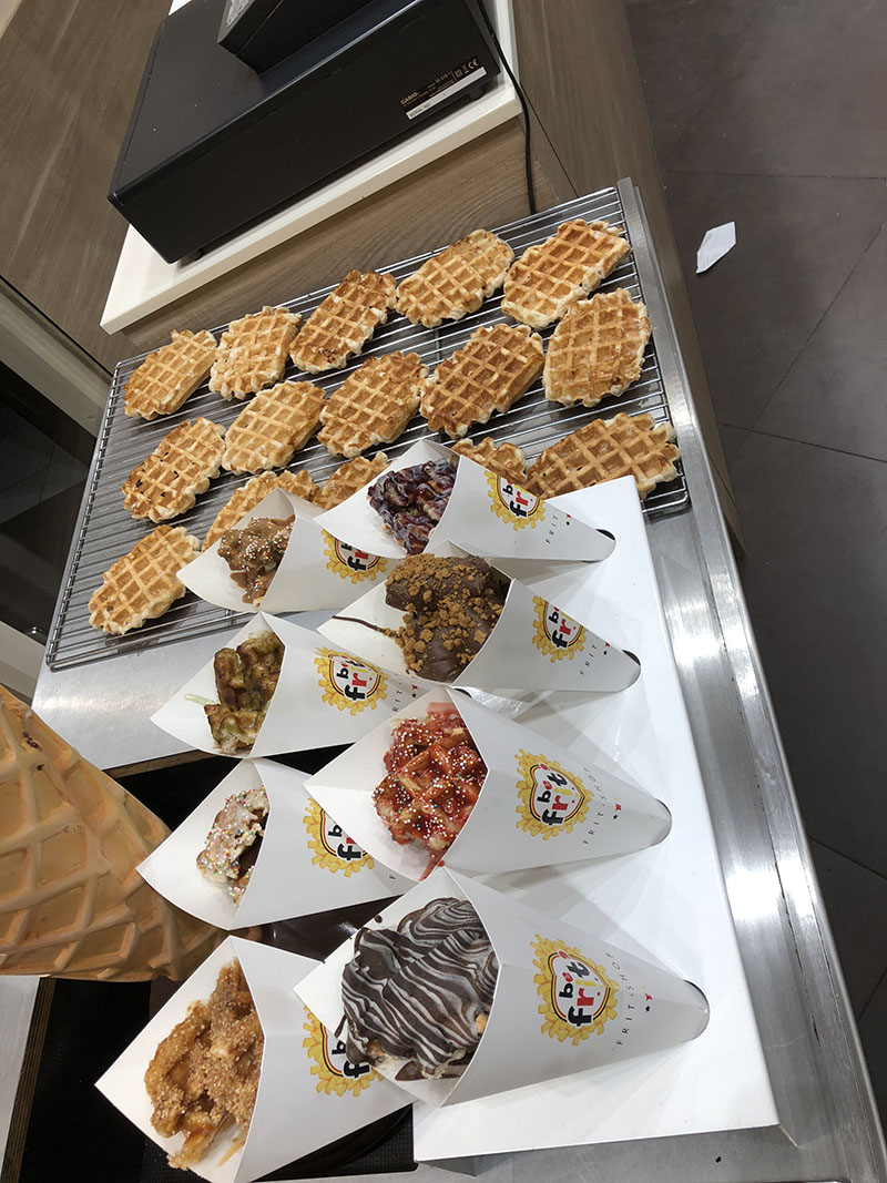 走在比利时的大街上,随处可见的除了巧克力店铺,还有香甜的华夫饼店。比利时的华夫饼有三种不同的类型,列日华夫饼是最流行的华夫饼类型,一般会配上糖粉或者拌上肉桂和香草,比利时人喜欢配上奶油、巧克力、水果、冰淇淋等一同食用。布鲁塞尔华夫饼的体量是更大的矩形,样子非常独特。Galettes campinoises则更薄也更脆,黄油含量比较多,质地松软。