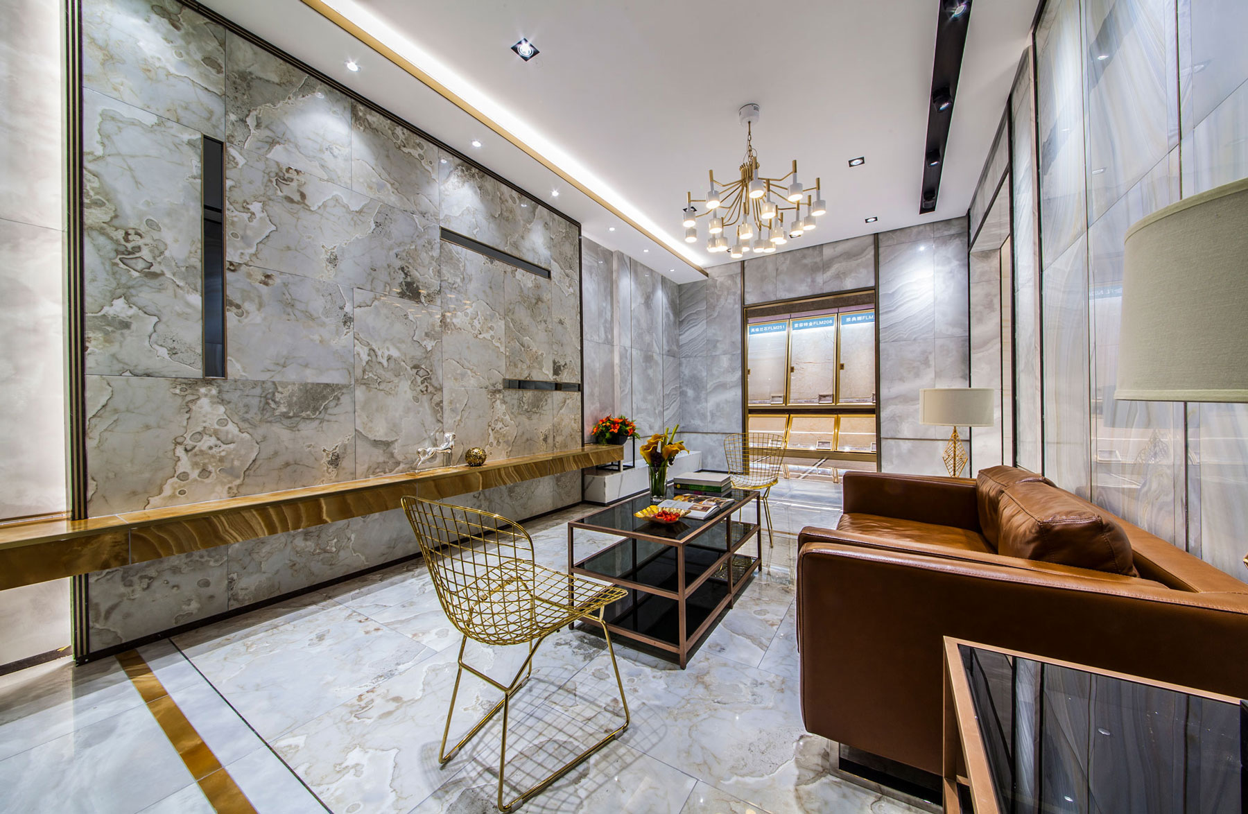 解说:地砖、墙砖:SCM213DE彩虹玛瑙, 背景墙:SCM111DE冰糖玛瑙 ,空间主体采用通透纯净的冰糖玛瑙,其兼具玉与水晶的丽质于一身,无需任何雕饰,自然组成画面,形同泼墨写意画,更富自然韵味。 地砖同时搭配彩虹玛瑙,流畅自然的纹理,亮眼的色彩,给空间带来灵动的活力。